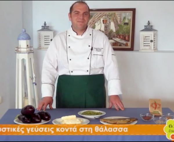 Στη σημερινή εκπομπή με τίτλο «Απολαυστικές γεύσεις κοντά στη θάλασσα» ο Σταμάτης μας προτείνει ένα καλοκαιρινό γεύμα ιδανικό να το συνοδεύσουμε με χιώτικο ούζο. Το γεύμα μας ξεκινά με μελιτζάνες με σάλτσα ντομάτας και συνεχίζεται με φάβα με ρέγγα καπνιστή με σοταρισμένο κρεμμύδι και κάπαρη, ως επιδόρπιο μας προτείνει μια κρέμα προφιτερόλ .