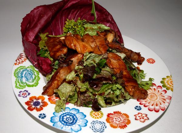 Στη σημερινή εκπομπή ο Σταμάτης μας προτείνει ένα γρήγορο και ιδιαίτερα γευστικό μενού. Ξεκινάμε με σαλάτα με ανάμικτα μαρουλοειδή με ζουλιέν χοιρινού γλασσαρισμένα με σάλτσα Jack Daniel’s. Συνεχίζουμε με σουβλάκια κοτόπουλο μαριναρισμένα με γιαούρτι και μπαχαρικά σερβιρισμένα επάνω σε πίττα με ψημένη ντομάτα και το γευστικό μενού μας ολοκληρώνεται με ένα κομμάτι σπιτικής τούρτας με κρέμα σοκολάτας-καφέ.