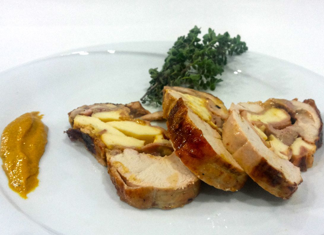 Γουρουνόπουλο γεμιστό με ρύζι αρωματισμένο με παστουρμά και μήλο