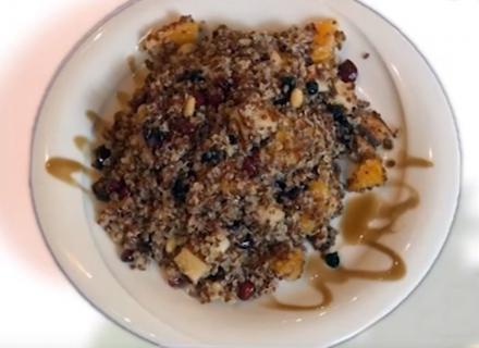 Μία σαλάτα με την υπερτροφή κινόα συνδυασμένη με μαστέλο