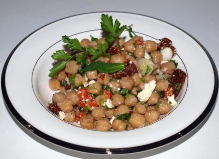 Ρεβίθια με φέτα βαρελίσια λιαστή ντομάτα και κρεμμύδι