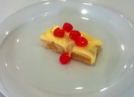 Διαλύουμε τη μάγια σε λίγο χλιαρό νερό με λίγο αλεύρι ώστε να γίνει χυλός και την αφήνουμε σε θερμοκρασία 35 βαθμών να φουσκώσει και να κάνει φουσκάλες (περίπου μισή ώρα). Βάζουμε όλα τα υλικά της ζύμης μαζί με τη μαγιά στο μπολ του μίξερ και ζυμώνουμε με το γάντζο ζυμώματος ώσπου να γίνει η ζύμη λεία και μαλακή. Αν χρειαστεί, προσθέτουμε λίγο ακόμη αλεύρι. Σκεπάζουμε κι αφήνουμε τη ζύμη να φουσκώσει (περίπου μια ώρα) σε μέρος ζεστό (35 βαθμούς). Βουτυρώνουμε καλά ένα ταψί και αφού έχουμε πρώτα ανοίξει τη ζύμη στο επιθυμητό μέγεθος, τη στρώνουμε ομοιόμορφα. Την αφήνουμε να φουσκώσει -περίπου μια ώρα- σε μέρος ζεστό μέχρι να διπλασιαστεί τουλάχιστον ο όγκος της. Τα ψήνουμε για 15' στους 160 βαθμούς με αέρα και στη συνέχεια τα αναποδογυρίζουμε πάνω σε μια σχάρα του φούρνου και τα αφήνουμε για 30' στους 120 να στεγνώσουν. Αφήστε τα να κρυώσουν και στη συνέχεια ξαναβάλτε τα στη θέση τους στο ταψί. Φτιάχνουμε το σιρόπι και με ζεστό το σιρόπι και κρύο το εκμέκ. Επικαλύπτουμε με κρέμα ζαχαροπλαστικής και κόβουμε σε κομμάτια και γαρνίρουμε με σαντιγί και κερασάκια.