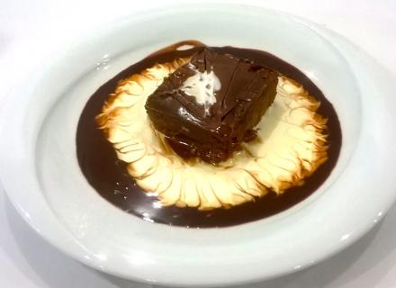 Λιώνουμε τη σοκολάτα με το βούτυρο και την κρέμα γάλακτος σε μπεν μαρί. Χτυπάμε στο μίξερ τα αυγά και τη ζάχαρη, έως ότου τριπλασιαστούν σε όγκο. Προθερμαίνουμε το φούρνο στους 170° C.Ενσωματώνουμε το μείγμα σοκολάτας στο μείγμα των αυγών. Τέλος προσθέτουμε το αλεύρι και ανακατεύουμε καλά. Βουτυρώνουμε και αλευρώνουμε ένα ταψί 30x40 εκ. και απλώνουμε σε αυτό τη ζύμη. Ψήνουμε τη σοκολατόπιτα στον προθερμασμένο φούρνο για 20 - 23 λεπτά.