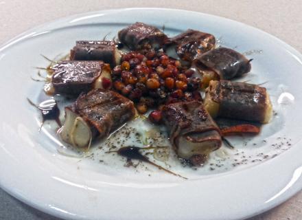 Ψητό ρολάκι παστουρμά γεμιστό με προβολόνε