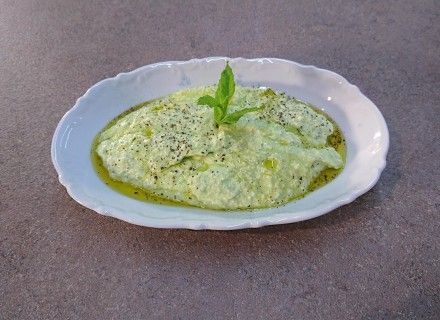 Προσθέτουμε το Μαστιχέλαιο ενώ συνεχίζουμε το χτύπημα και ρίχνουμε χυμό λεμονιού. Σερβίρεται κρύα ή σε θερμοκρασία δωματίου, σε ψημένη πίτα.